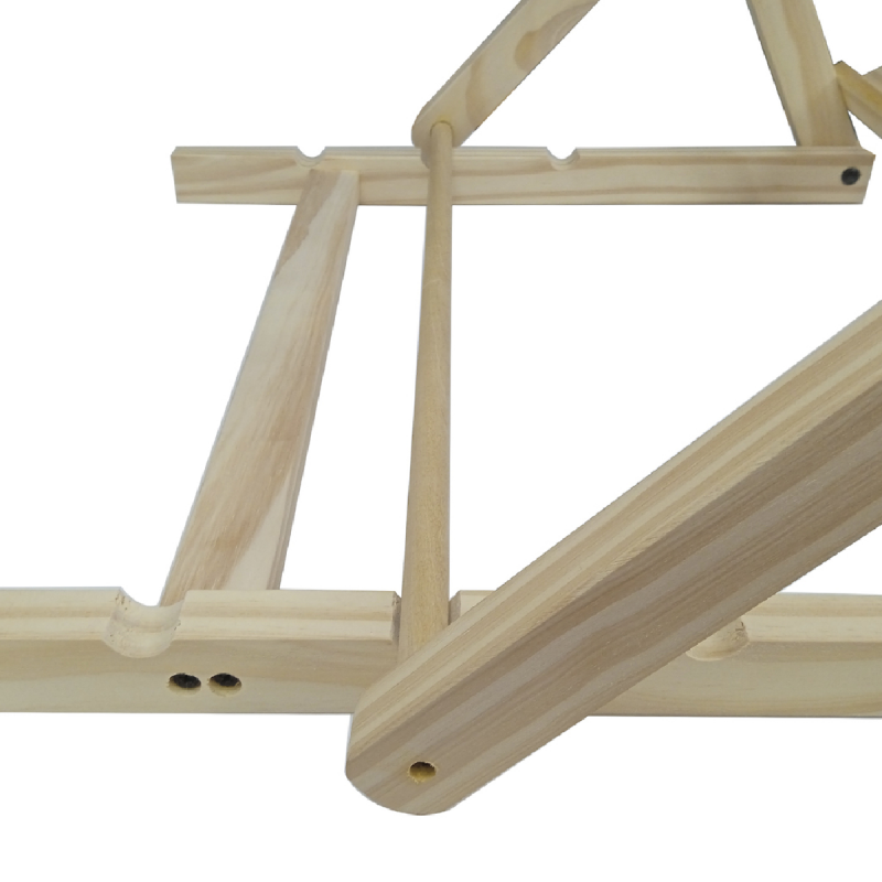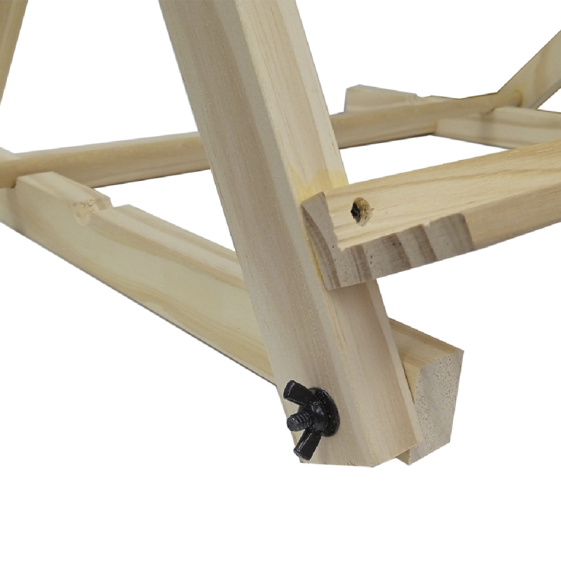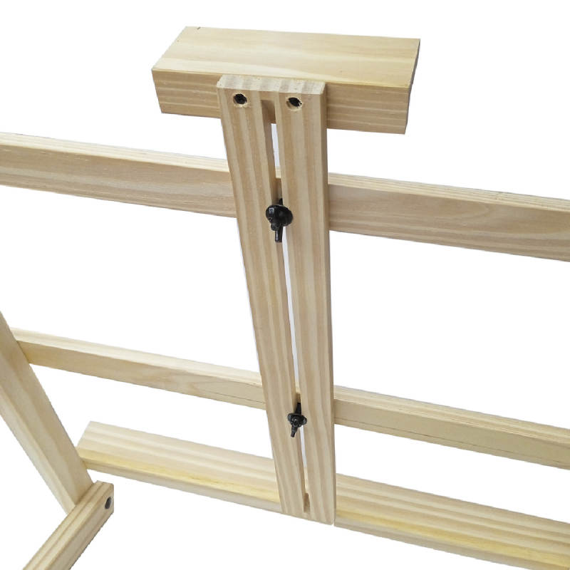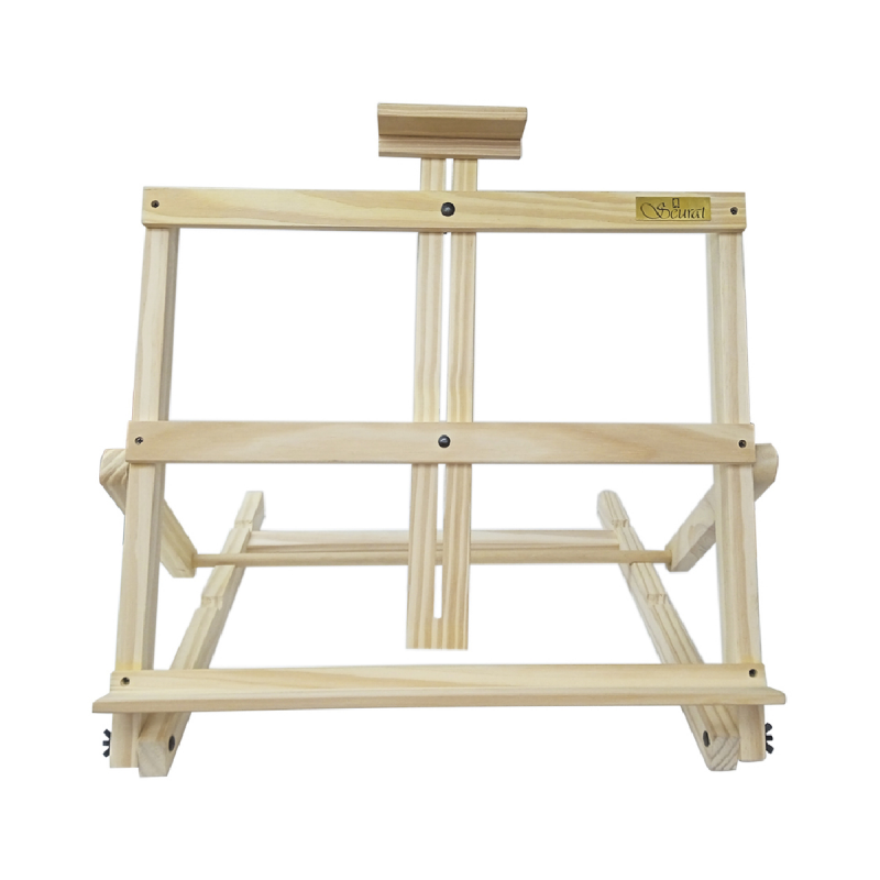 Con 3 posiciones, mínimo de bastidor 40 cm y máximo de 60 cm. Ancho de base de bastidor 3 cm. No plegado Medidas: 47 de ancho x 52 de alto x 8 cm de espesor.