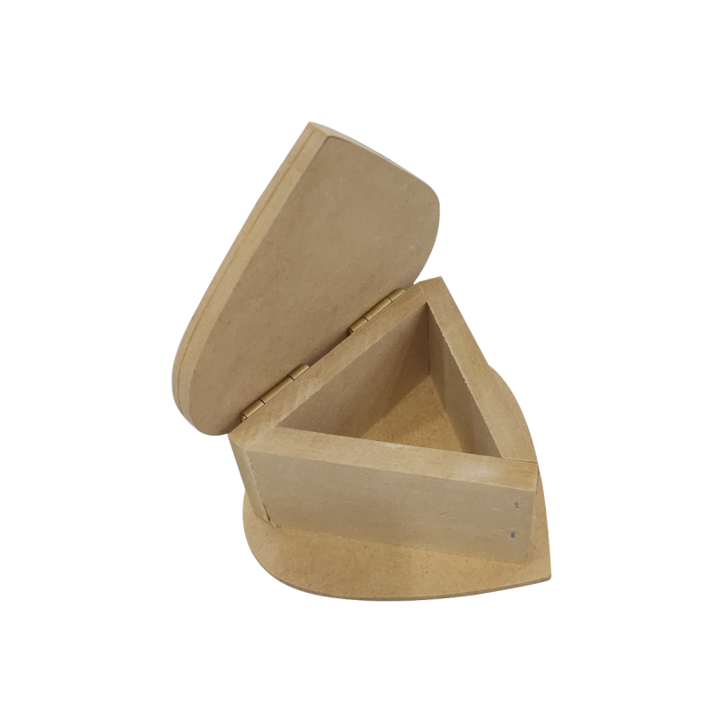 Caja de base y tapa con forma de corazón, interior triangular.
