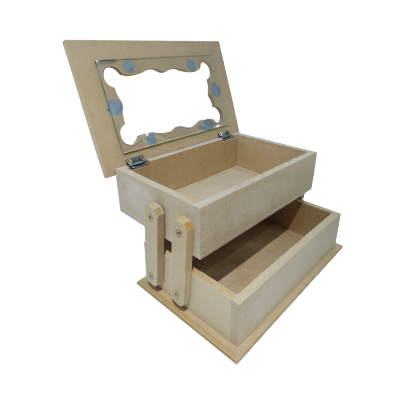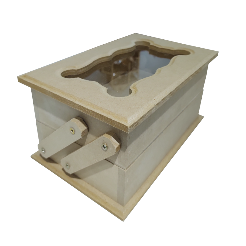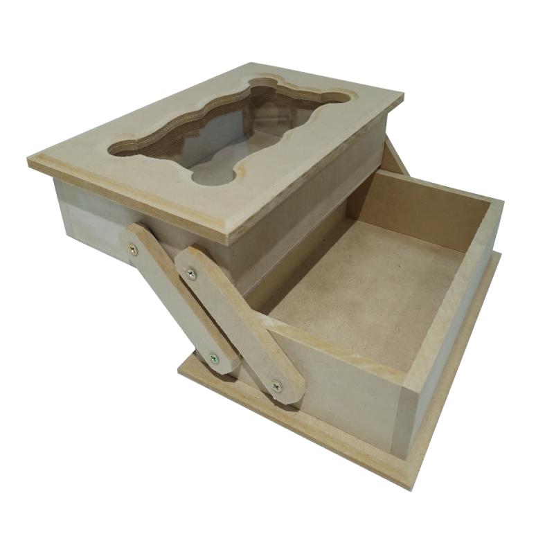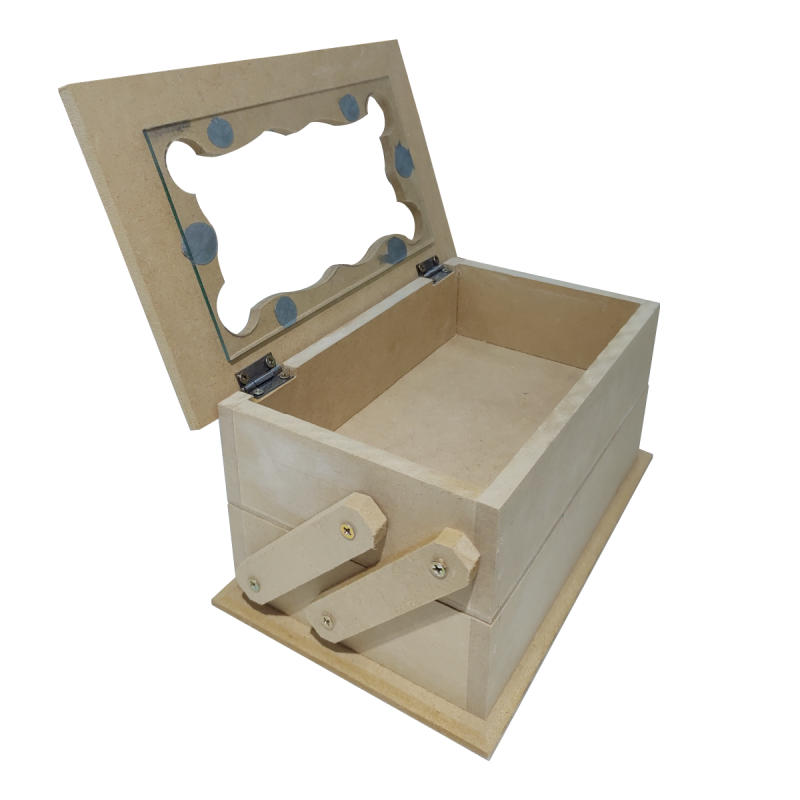 Costurero tapa bisagras ciegas y vidrio, 2 cavidades desplegable.