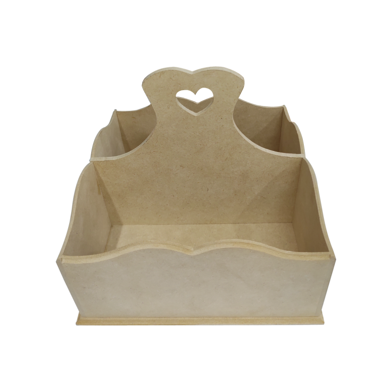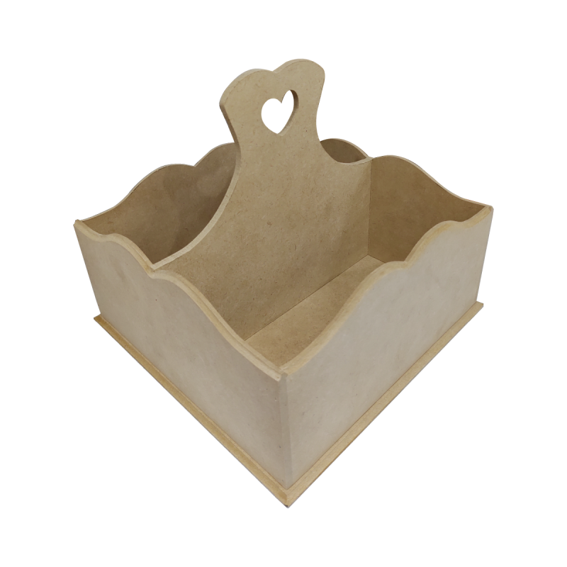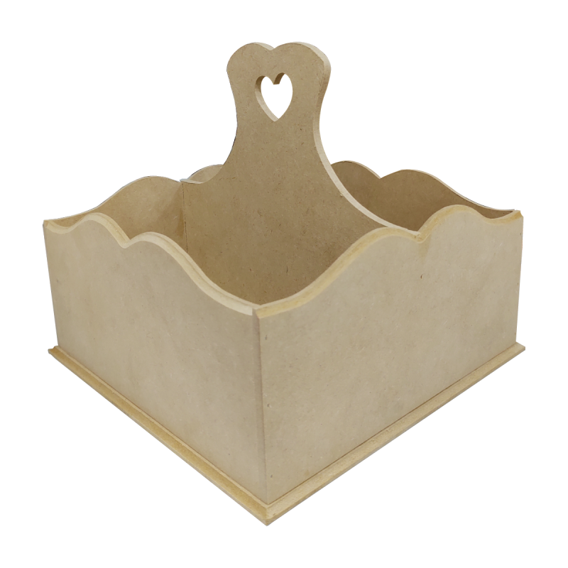 Perfumero cuadrado con manija calada, bordes con ondas.