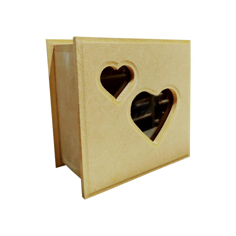 Caja de te con bisagra corazones calados en la tapa, divisiones desmontables.