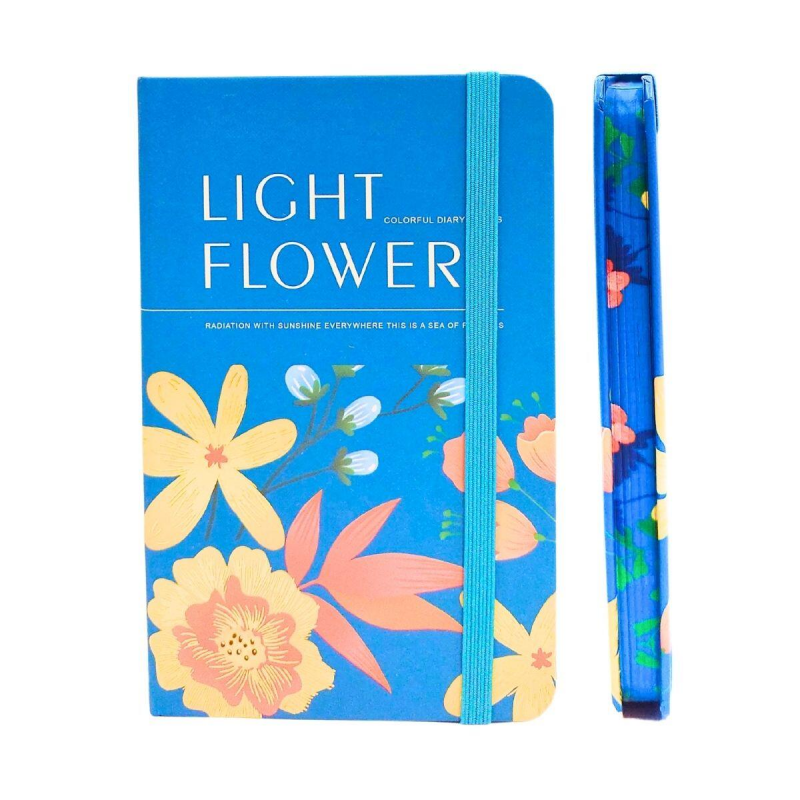 Pequeña libreta tamaño A6, de tapa dura con diseños de flores en colores brillantes, pasteles y detalles metalizados. Contiene 80 hojas lisas
