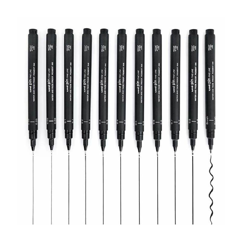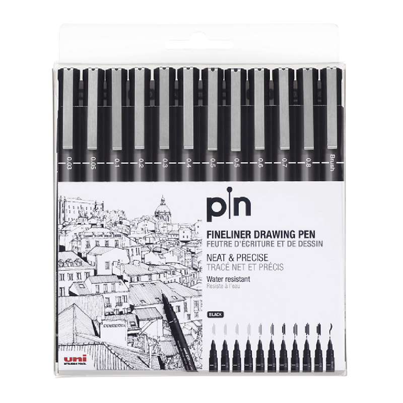 El Uni PIN es un rotulador de escritura y dibujo técnico y preciso. Con su punta calibrada y su SUPER TINTA, garantiza un trazo permanente, intenso, limpio y preciso. Robusto y bien diseñado, es la herramienta esencial para numerosos artistas y profesionales. La amplia gama de tamaños del Uni PIN permite crear líneas nítidas y claras. Es la herramienta ideal para perfeccionar técnicas como el lettering, el punteado, el rayado y el sombreado.