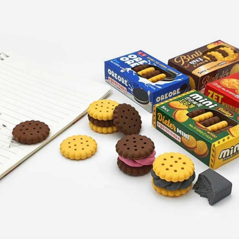 Este set de 5 gomas de borrar, es una opción divertida y única para cualquier estudiante o artista. Cada goma tiene una forma circular y un diseño que se asemeja a una pequeña galleta, lo que le da un toque de alegría a cualquier cartuchera.