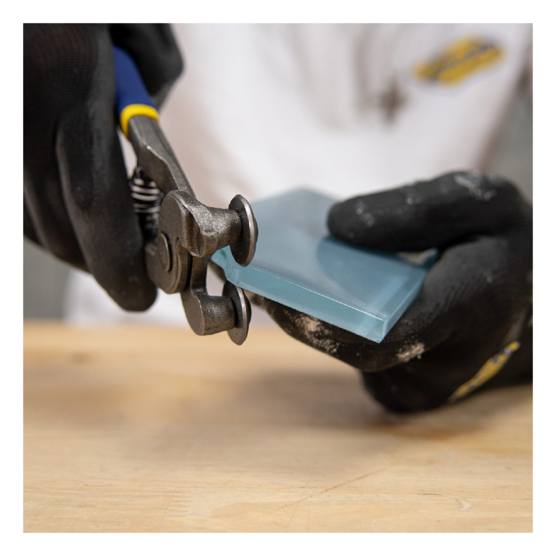 La pinza para azulejos de vidrio QEP está diseñada para cortar fácilmente formas irregulares en azulejos de vidrio, entre 1/32 y 1/4 de pulgada de espesor, sin el uso de cortadores convencionales. Utilice esta pinza para recortar baldosas de vidrio para que quepan alrededor de tuberías, gabinetes, paredes o crear mosaicos de vidrio llamativos. Simplemente sostenga la pinza como si fuera una tijera, con la baldosa entre las ruedas, y apriete los mangos suavemente. No es necesario que las ruedas giren al cortar.