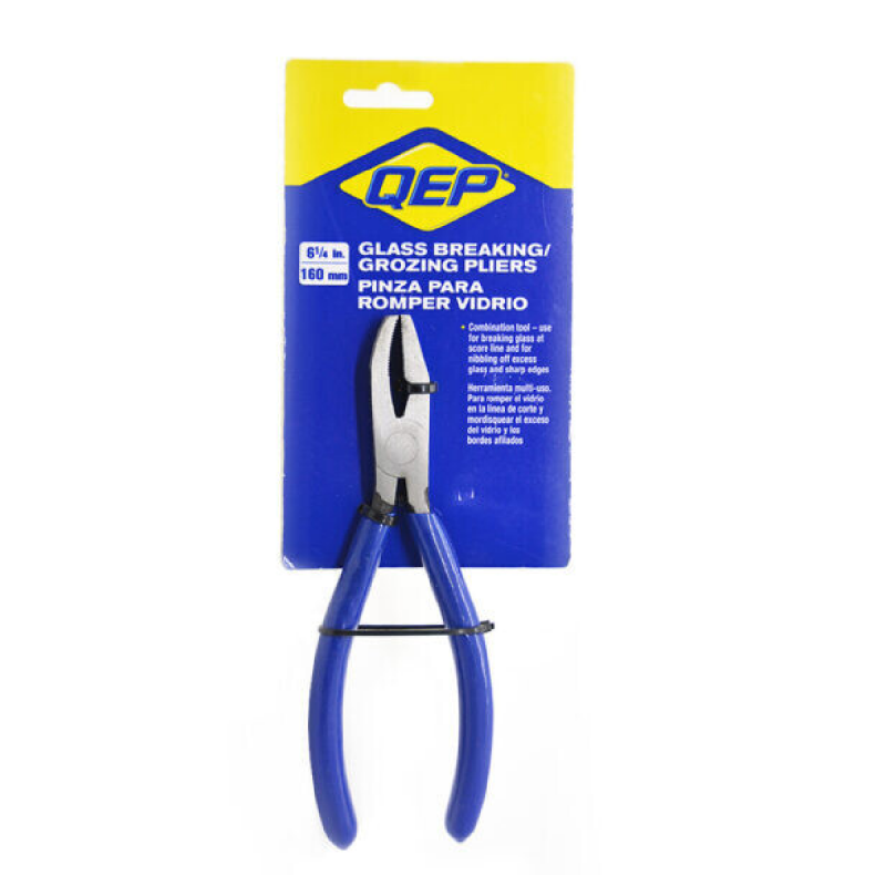 Pinza para romper el vidrio en la linea de corte y mordisquear el exceso de vidrio y los bordes afilados Marca QEP.