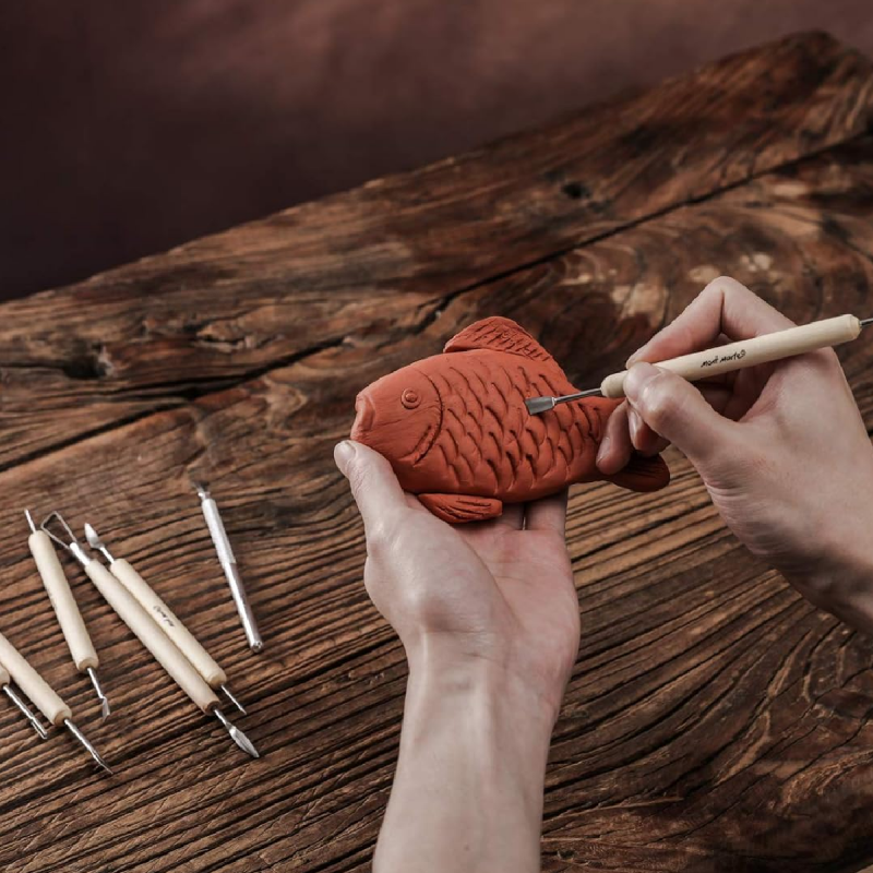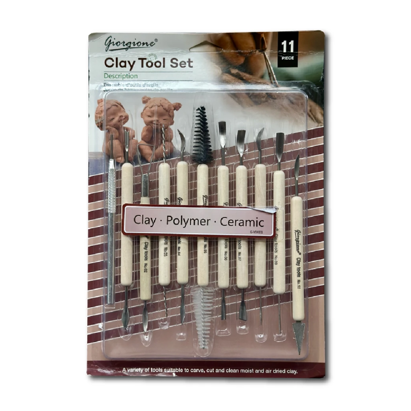 Este set contiene una variedad de herramientas apropiadas para el uso en arcilla y materiales similares. Se pueden usar para tallar, cortar y limpiar mientras la arcilla aun esta húmeda o sacada al aire. Estas herramientas también pueden ser usadas con arcilla polimérica.