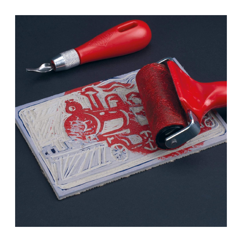 Está diseñado para que los rodillos húmedos se puedan voltear con el mango doblado como soporte para un trabajo más limpio. Estos rodillos versátiles se pueden usar para una variedad de propósitos distintos de la impresión en bloque, incluidos los álbumes de recortes, la laminación e incluso procesos industriales como la aplicación de películas para ventanas y gráficos de vehículos.