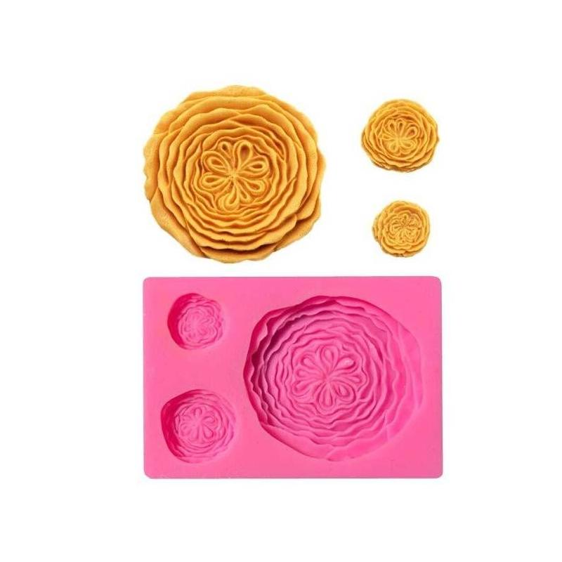 Molde de silicona rígido y a la vez flexible de una única pieza con tres cavidades para poder realizar con masas ( arcilla polimérica horneable, porcelana fría, arcillas al agua, resina al agua, silicona líquida o barra de silicona...)