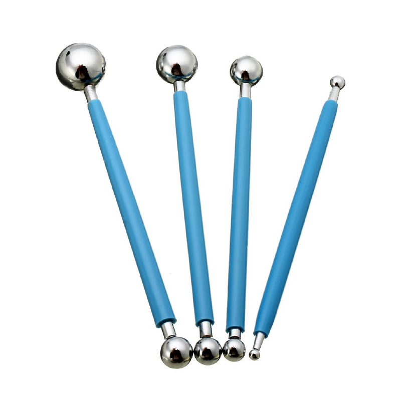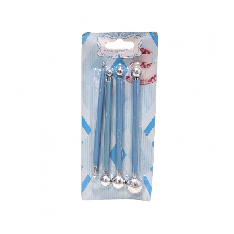 Set de cuatro bolillos con doble punta, una pequeña y una grande. Esta herramienta sirve para afinar los extremos de la pasta para flores y fondant, crear pétalos y hojas onduladas, grabar impresiones redondas y crear pequeños detalles como orejas de animales o botones.