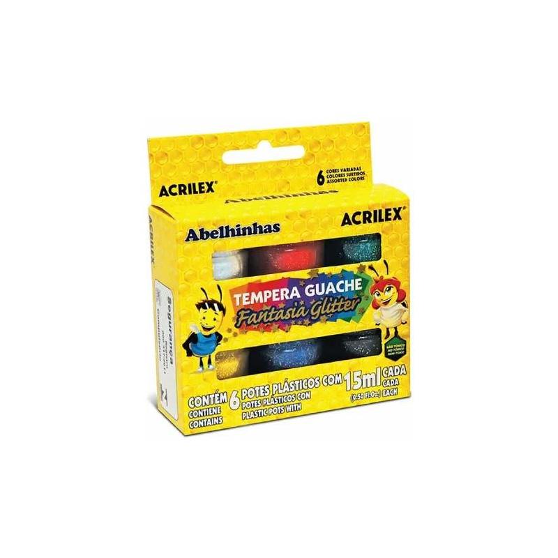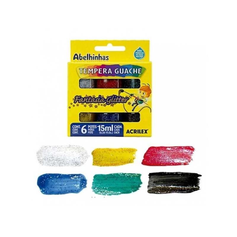 Colores con glitter: amarillo, rojo, azul, verde, blanco y negro (colores mezclables entre sí).