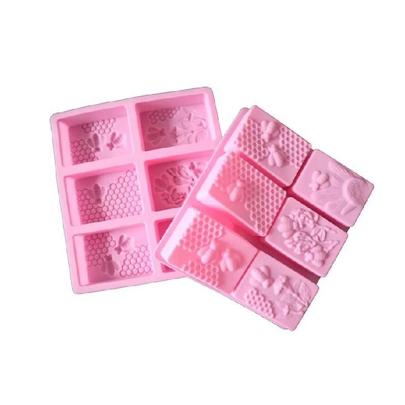Molde de silicona flexible ideal para la fabricación de jabones, velas, resina, yeso, cemento, cera y manualidades en general. Diseño rectangular con relieve de flores y abeja, permite obtener piezas detalladas y prolijas en cada uso.