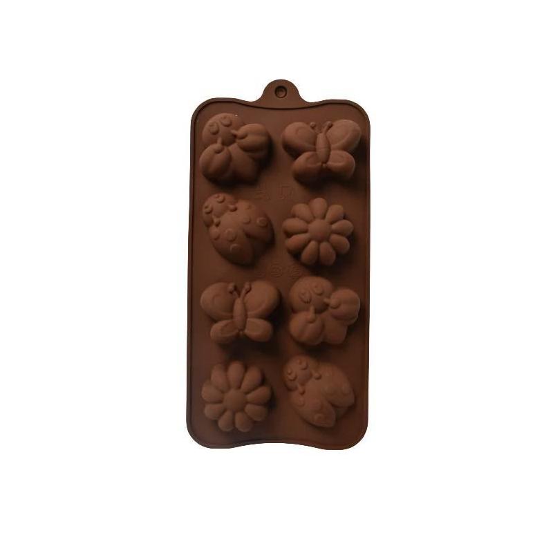 Molde en silicona por 8 cavidades. Material no tóxico, podemos utilizarlo para crear diferentes decoraciones en bombones, gelatinas, caramelos duros, fondant y otras increíbles creaciones. También se puede usar en el congelador para hacer cubos de hielo y paletas increíbles.