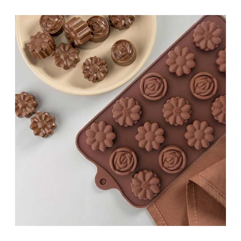 Molde en silicona por 15 cavidades. Material no tóxico, podemos utilizarlo para crear diferentes decoraciones en bombones, gelatinas, caramelos duros, fondant y otras increíbles creaciones. También se puede usar en el congelador para hacer cubos de hielo y paletas increíbles.