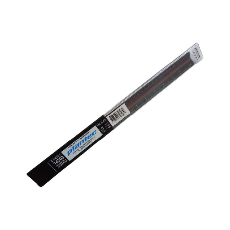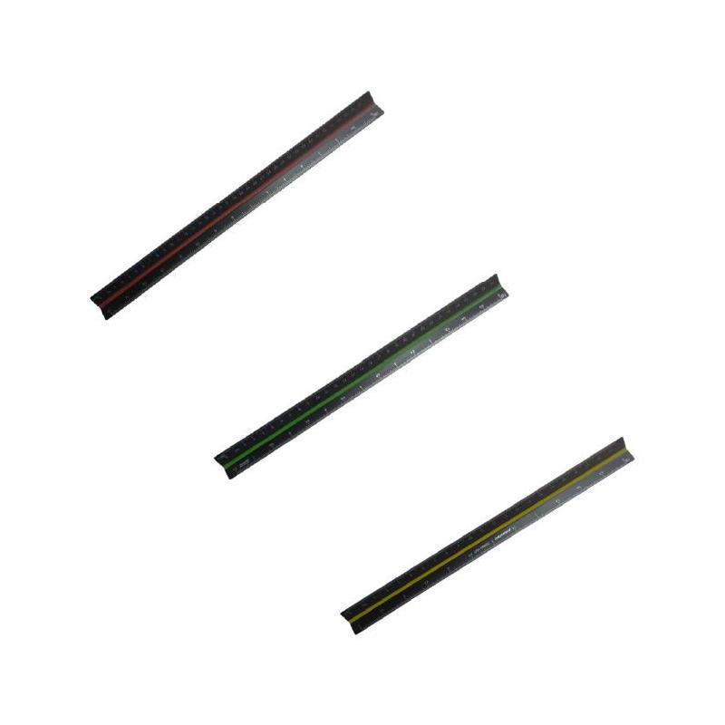 Escalímetro inyectado en ABS color negro con superficies pulidas y un perfecto acabado de las aristas. Alta definición de las seis graduaciones impresas con tratamiento UV inalterables. Las diferentes líneas de color normalizado, identifican fácilmente las diferentes escalas.
