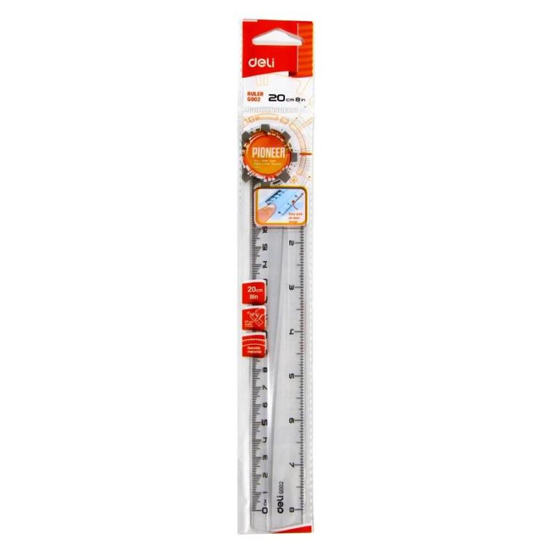 Regla de 20 cm, resistente y liviana. Transparente, con medidas en centímetros fáciles de leer. Ideal para uso diario.