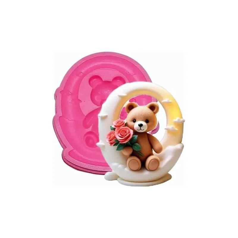 Molde De Silicona Oso Con Rosa 028N12