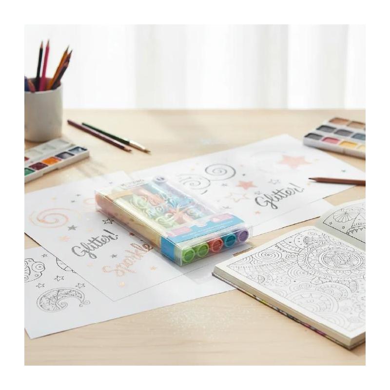 Tinta: Metálica con brillos (glitter) a base de agua.
