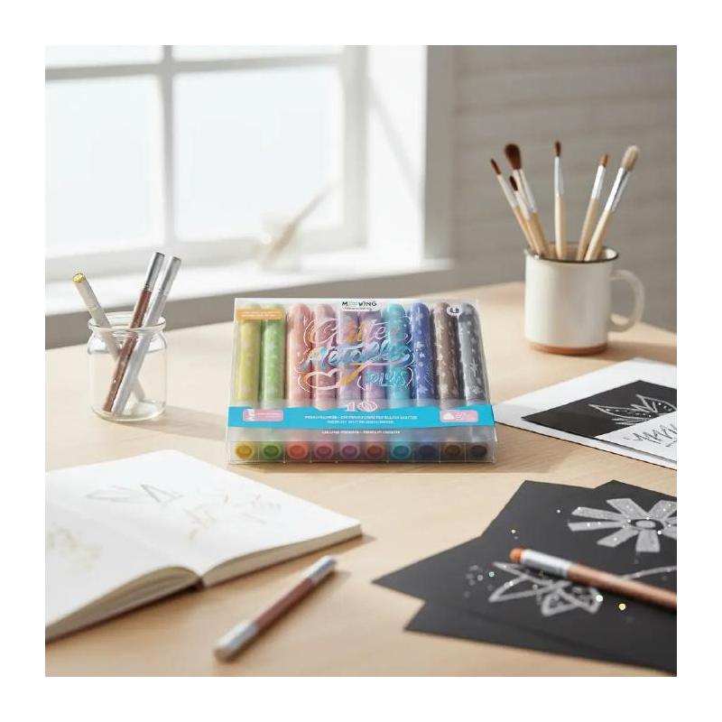 Tinta: Metálica con brillos (glitter) a base de agua.