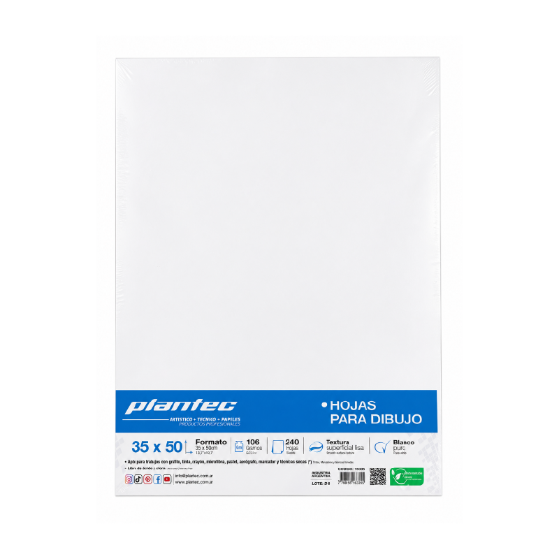 El papel de dibujo Plantec es la elección ideal para artistas y estudiantes que buscan calidad y versatilidad en sus proyectos creativos. Con un gramaje de 106 g, este papel liso de 35x50 cm ofrece una superficie perfecta para lápices, carboncillos y tintas, permitiendo que cada trazo se exprese con claridad y precisión.