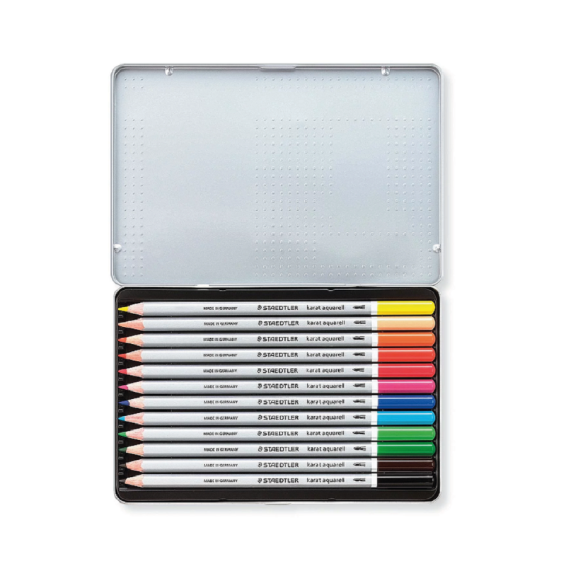 Caja de metal contiene 12 colores surtidos.