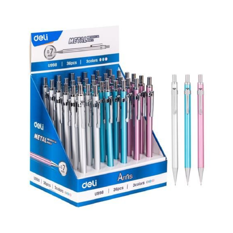 Este portaminas metálico es una excelente opción para aquellos que buscan calidad y durabilidad en sus herramientas de escritura. Con un grosor de mina de 0.5mm, este portaminas es perfecto para trazos precisos y limpios en cualquier tipo de papel