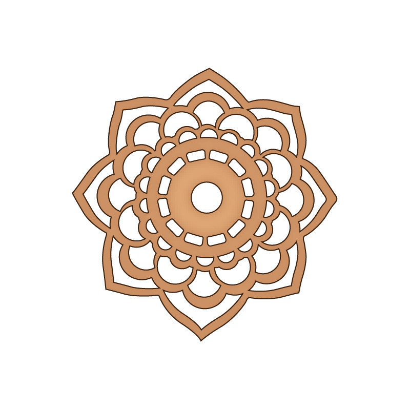 Mandala de fibrofácil con corte y grabado láser, en 3 mm de espesor.