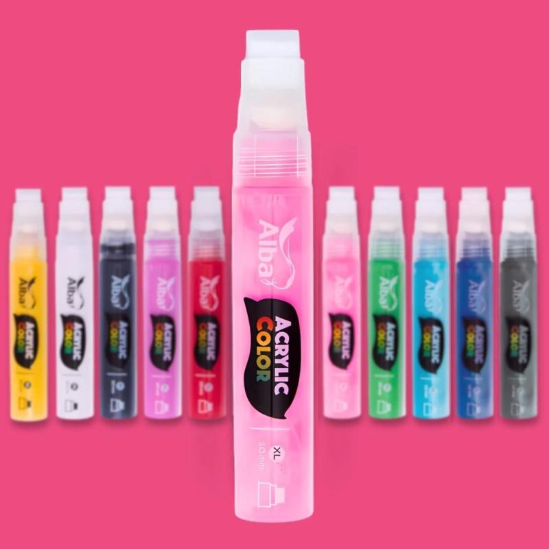 Los marcadores Alba Acrylic Color son recargables y se fabricaron para ser rellenados muchas veces sin desgaste, sin pérdidas y manteniendo la misma calidad. Las recargas permiten mezclar y crear tus propios colores. Además sus colores son intensos y compatibles con la línea de Acrílicos Decoralba.