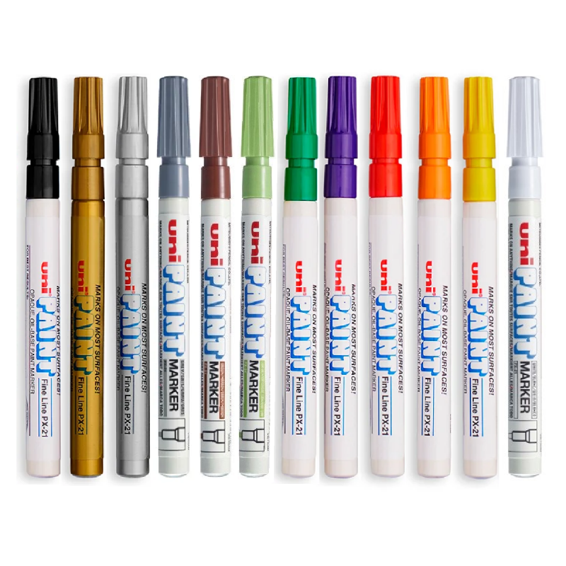 El marcador Uni Paint está diseñado para ofrecer colores vibrantes con tinta resistente al agua sobre cualquier superficie. Este marcador a base de aceite es ideal para artistas, estudiantes y cualquier persona que quiera dejar una marca duradera. Tiene una punta acrílica fuerte de 1,8 a 2,2 mm para una gran cobertura de color y un trabajo de línea fuerte, limpia y prolija.