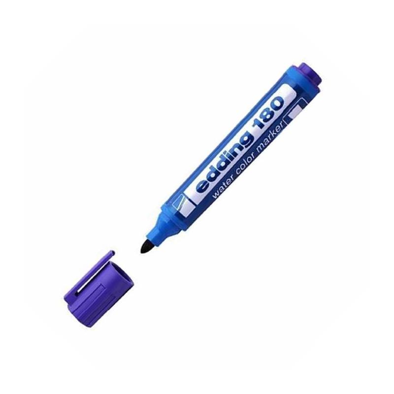 Cuerpo redondo plástico con tapa que indica el color de la tinta. Punta redonda con un trazo de 1,5 a 3 mm. Tinta a base de agua, de olor tenue, que no traspasa el papel. Ideal para escribir sobre rotafolios y otros papeles. Descartable.