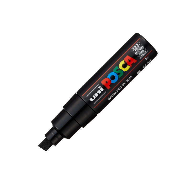 Con su punta ancha biselada, el PC-8K no solo puede trazar curvas claras con un efecto gráfico de caligrafía; también puede cubrir grandes superficies. Disponible en una gran gama de colores, es ideal para colores plenos, marcas de todo tipo y por supuesto, street art y lettering.
