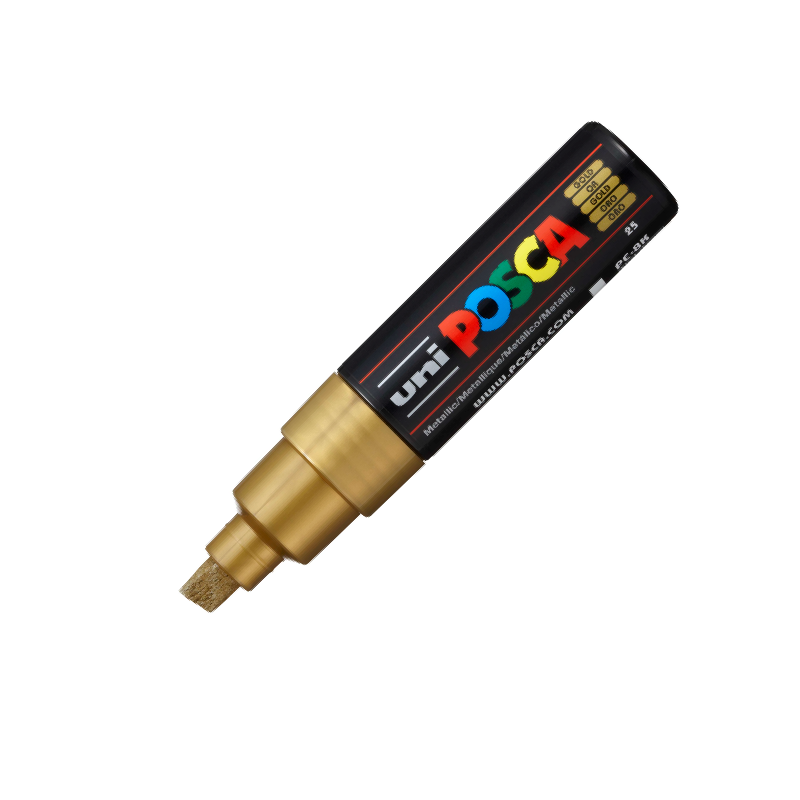 Con su punta ancha biselada, el PC-8K no solo puede trazar curvas claras con un efecto gráfico de caligrafía; también puede cubrir grandes superficies. Disponible en una gran gama de colores, es ideal para colores plenos, marcas de todo tipo y por supuesto, street art y lettering.