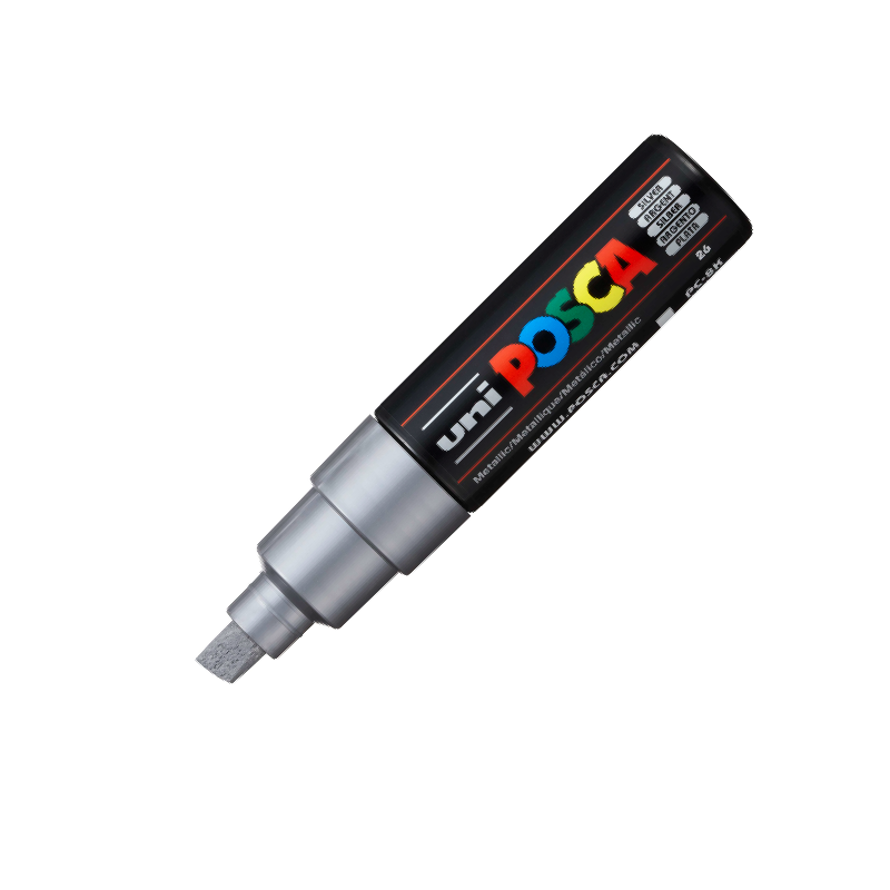 Con su punta ancha biselada, el PC-8K no solo puede trazar curvas claras con un efecto gráfico de caligrafía; también puede cubrir grandes superficies. Disponible en una gran gama de colores, es ideal para colores plenos, marcas de todo tipo y por supuesto, street art y lettering.