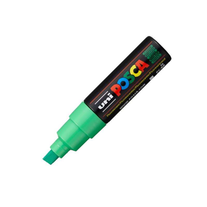Con su punta ancha biselada, el PC-8K no solo puede trazar curvas claras con un efecto gráfico de caligrafía; también puede cubrir grandes superficies. Disponible en una gran gama de colores, es ideal para colores plenos, marcas de todo tipo y por supuesto, street art y lettering.