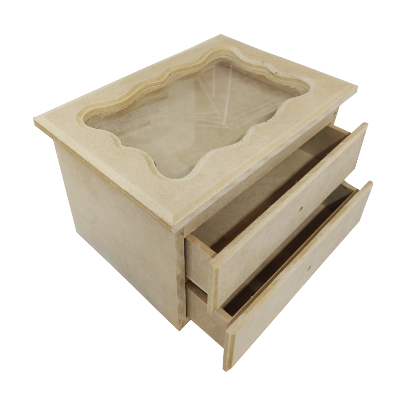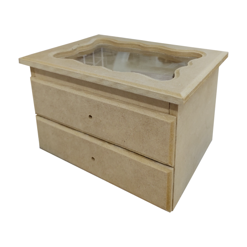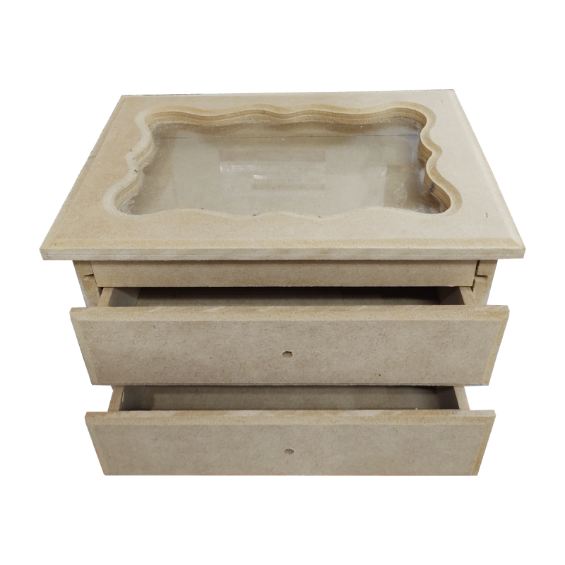Cajonera horizontal x 2 cajones y vidrio en la parte superior.