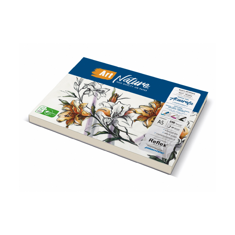 ART NATURE Artístico es un papel ideal para todas las técnicas por su gran performance de uso. Se trata de un genuino papel Mix Media, por su gran resistencia al trazado y borrado intenso y reiterado. Es el papel más utilizado para el dibujo lineal y artístico, ya que realza la aplicación de todos los elementos de escritura y pintura. No se utilizan ácidos ni cloro para su fabricación, lo que lo hace resistente al envejecimiento sin amarilleos por el paso del tiempo. Multitécnicas : acuarela – acuarelable, lápiz, tintas, pasteles, marcadores e impresión en offset, acrílico y pinturas.