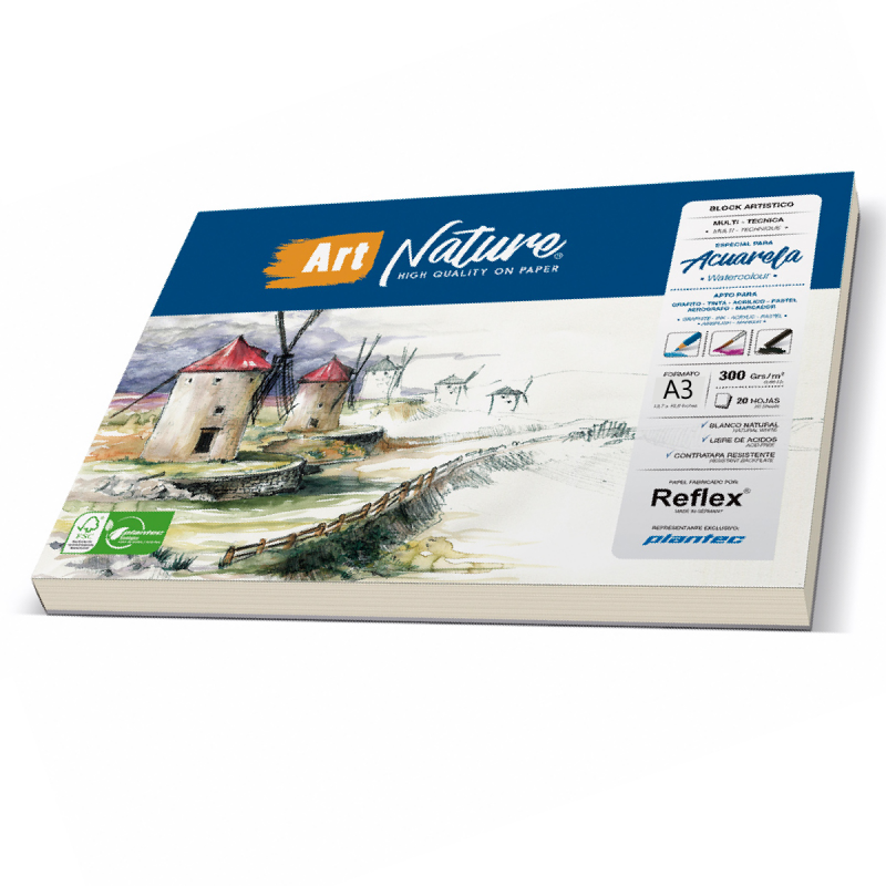 ART NATURE Artístico es un papel ideal para todas las técnicas por su gran performance de uso. Se trata de un genuino papel Mix Media, por su gran resistencia al trazado y borrado intenso y reiterado. Es el papel más utilizado para el dibujo lineal y artístico, ya que realza la aplicación de todos los elementos de escritura y pintura. No se utilizan ácidos ni cloro para su fabricación, lo que lo hace resistente al envejecimiento sin amarilleos por el paso del tiempo. Multitécnicas : acuarela – acuarelable, lápiz, tintas, pasteles, marcadores e impresión en offset, acrílico y pinturas.