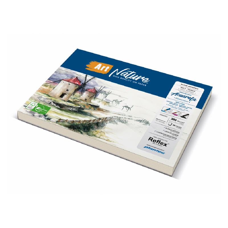 ART NATURE Artístico es un papel ideal para todas las técnicas por su gran performance de uso. Se trata de un genuino papel Mix Media, por su gran resistencia al trazado y borrado intenso y reiterado. Es el papel más utilizado para el dibujo lineal y artístico, ya que realza la aplicación de todos los elementos de escritura y pintura. No se utilizan ácidos ni cloro para su fabricación, lo que lo hace resistente al envejecimiento sin amarilleos por el paso del tiempo. Multitécnicas : acuarela – acuarelable, lápiz, tintas, pasteles, marcadores e impresión en offset, acrílico y pinturas.