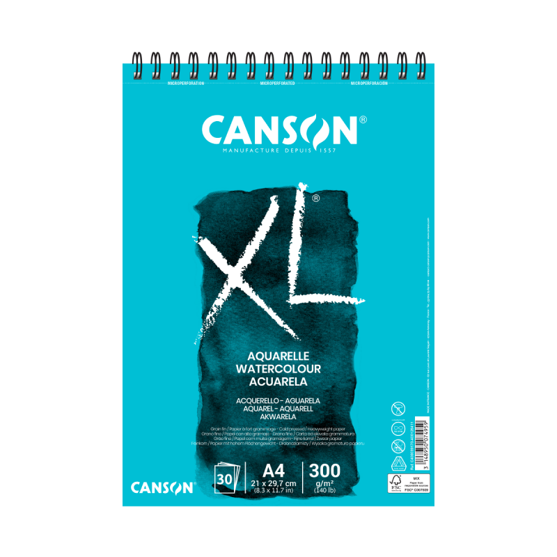 Disponible: Álbum espiralado XL aquarelle lado corto 300gr . Tamaño A4 y A3 grano fino 30 hojas y A5 grano fino 20 hojas