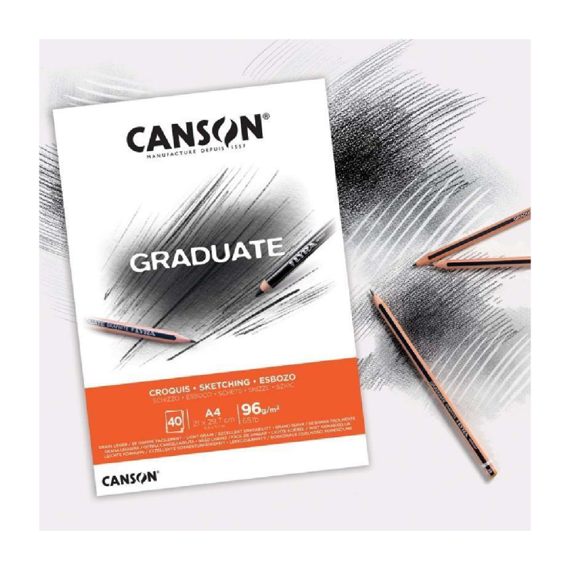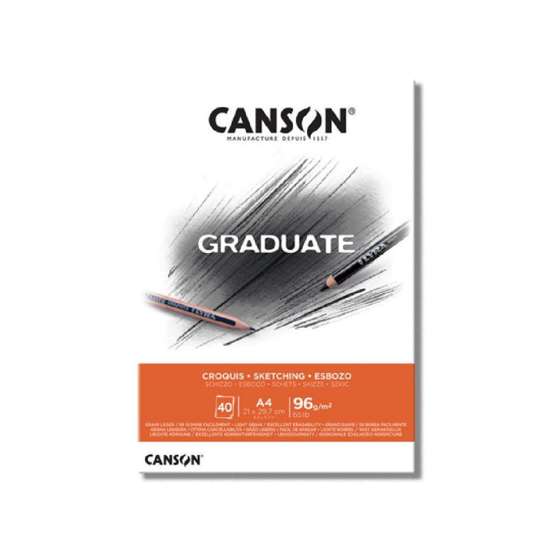 Los blocs Canson Graduate Esbozo ofrecen un papel blanco de escaso gramaje y ligeramente esponjoso. Compuestos por 40 hojas de papel de grano ligero y fácil de borrar, serán el soporte ideal cuando desees realizar un boceto rápido a lápiz.