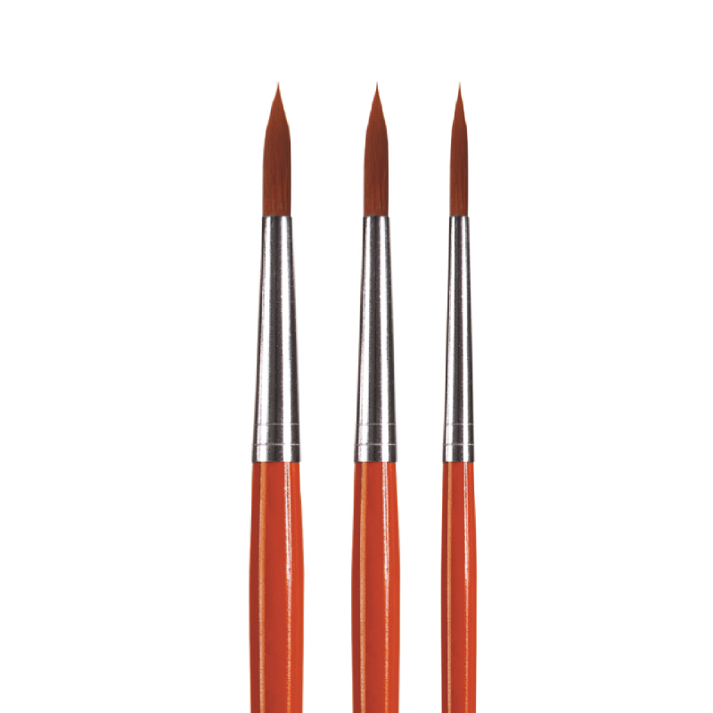 Pincel redondo Serie 7009 Hobby Art. Posee pelo fibra ponex, virola de aluminio y mango corto. Trazo suave, ideal para trabajos con acuarelas, pinturas para seda y pinturas al agua. Dimensión de 19 cm de largo.