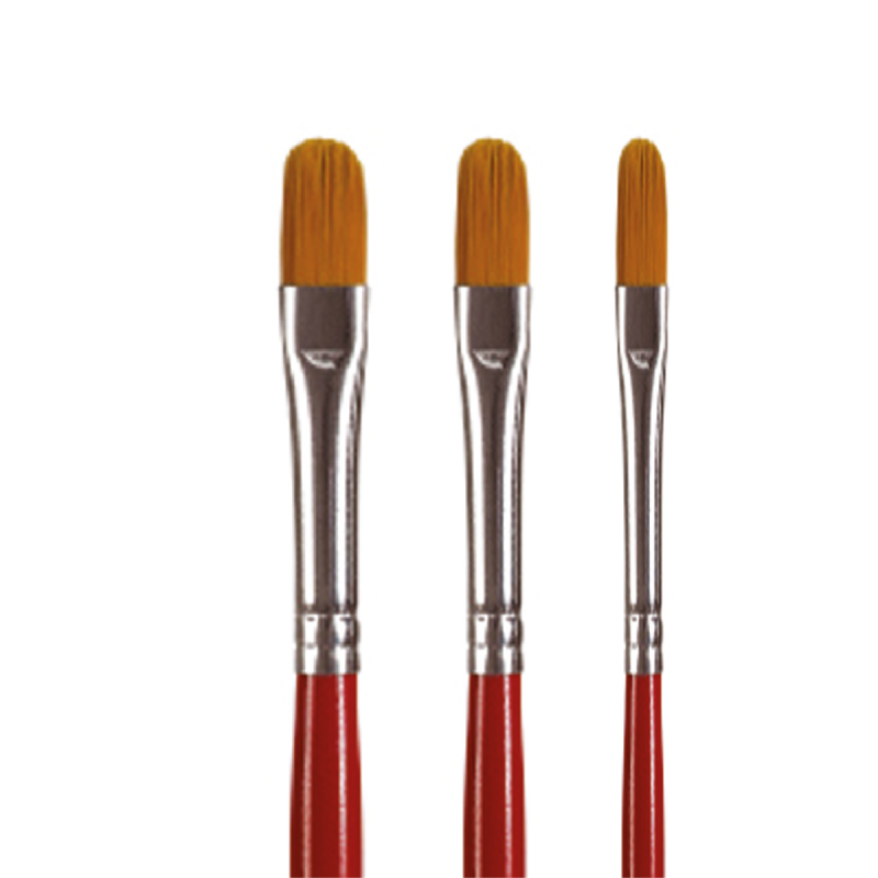 Punta lengua de gato, pelo de toray dorado, mango corto color rojo.