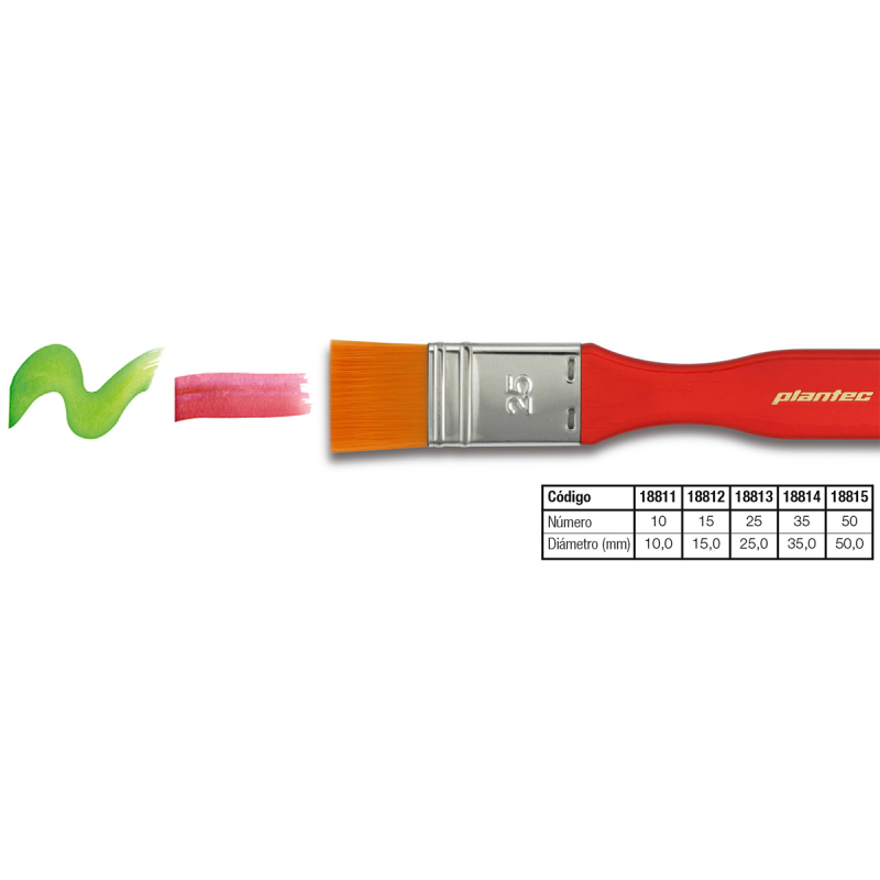 Las pinceletas profesionales PLANTEC tienen las siguientes características: Virola de chapa niquelada. Mango fabricado con madera estacionada y laqueado. Los pinceles que tienen pelo sintético, es de primera calidad. Confiere una máxima carga de pintura.