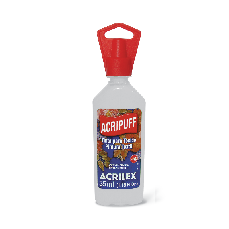 El Acripuff Base Incoloro debe ser mezclado con las Pinturas para Tela en la proporción de 3 partes de Base para 1 de Pintura para Tela y aplicada con pincel, de 3 a 4 capas.