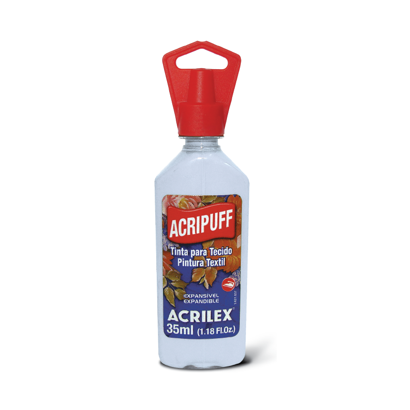 El Acripuff Base Incoloro debe ser mezclado con las Pinturas para Tela en la proporción de 3 partes de Base para 1 de Pintura para Tela y aplicada con pincel, de 3 a 4 capas.