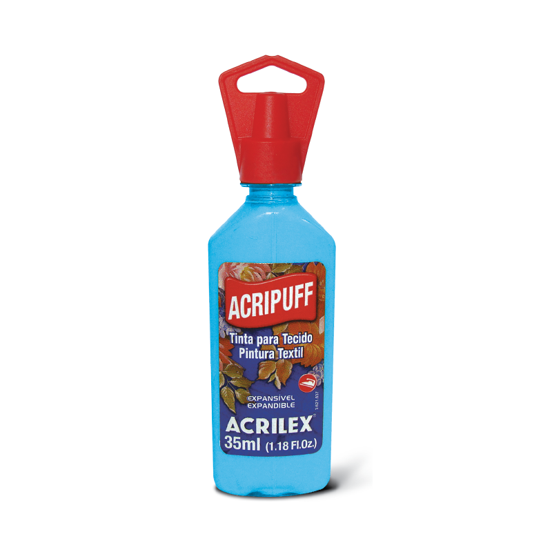 El Acripuff Base Incoloro debe ser mezclado con las Pinturas para Tela en la proporción de 3 partes de Base para 1 de Pintura para Tela y aplicada con pincel, de 3 a 4 capas.