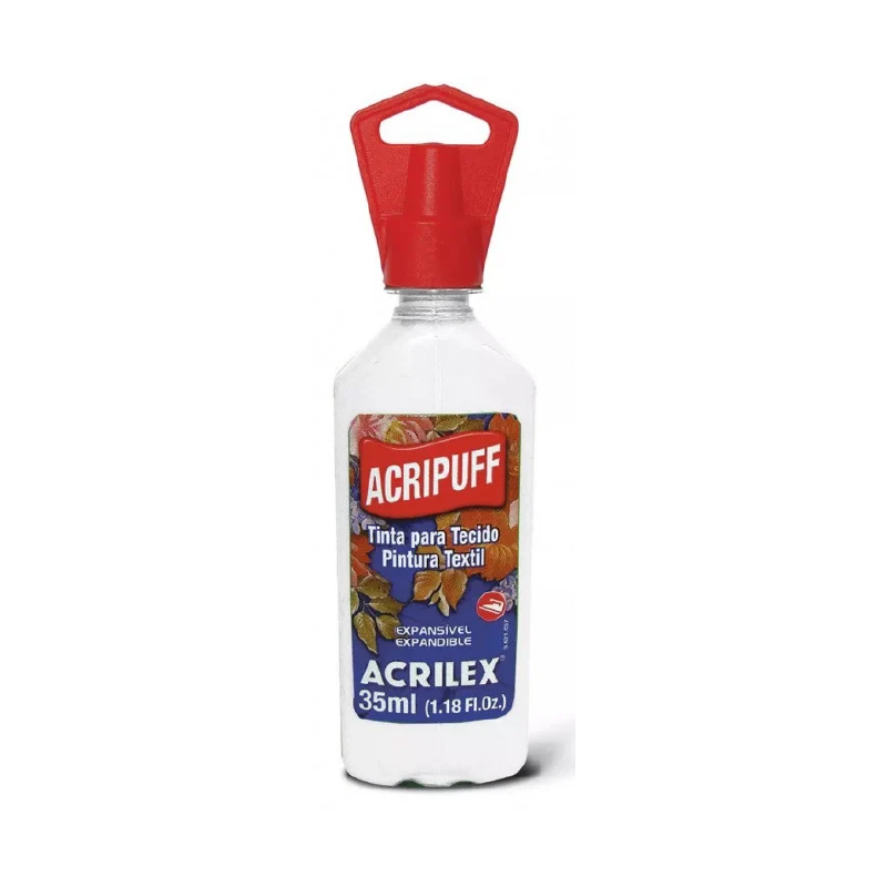 El Acripuff Base Incoloro debe ser mezclado con las Pinturas para Tela en la proporción de 3 partes de Base para 1 de Pintura para Tela y aplicada con pincel, de 3 a 4 capas.
