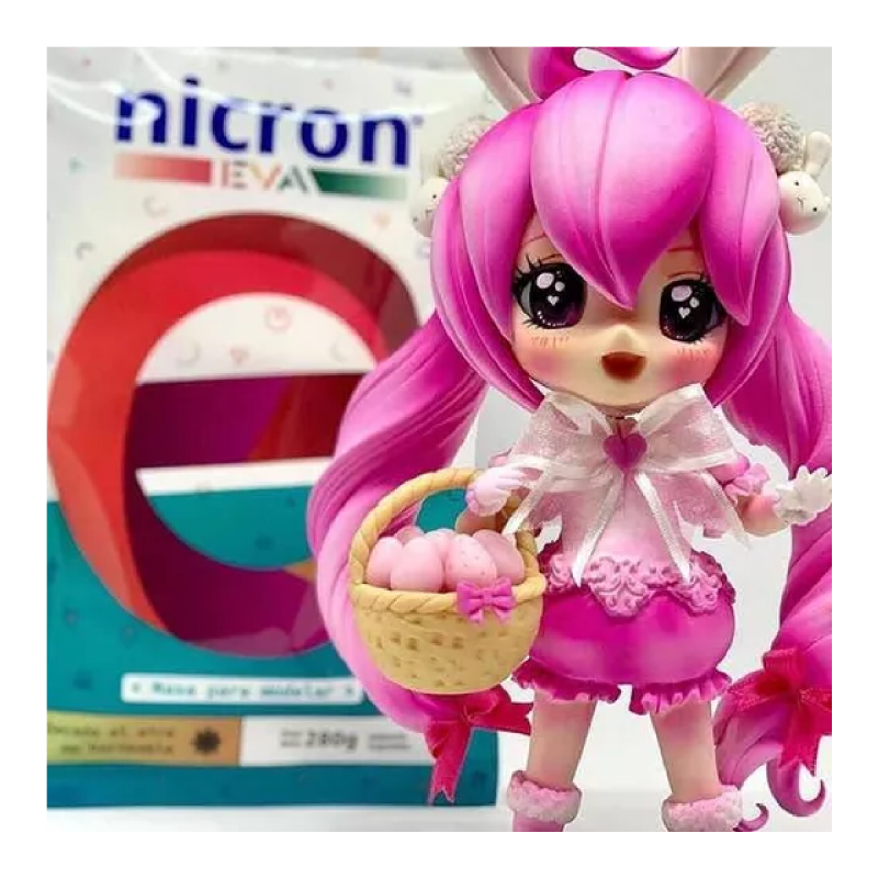 Nicron Eva Es nuestra masa para modelar con efecto goma eva (No es porcelana fría). Es flexible y súper liviana. No necesita desmoldante.