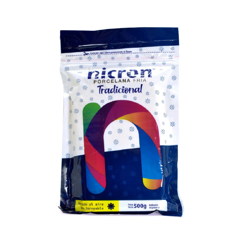 Nicron Tradicional Porcelana Fría es una masa única en el mercado gracias a su apariencia perlada, semi traslúcida en secado sin teñir lo que favorece notablemente a que no se distorsione los colores y resalte en su tono máximo. . Se caracteriza por su elasticidad en el amasado.