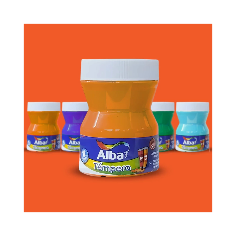 Se fabrican con la misma resina que se emplea en la elaboración de la Témpera extrafina Alba de calidad profesional: la goma arábiga. Este producto de origen vegetal de extendido uso en la industria de la alimentación asegura la no toxicidad del producto. Los pigmentos se seleccionan entre aquellos que permiten colores limpios y vivaces, en una concentración tal que asegura el mayor rendimiento y poder cubritivo. Una vez secas, es posible recuperarlas con agua, manteniendo todas sus propiedades. Tienen una excelente adherencia y un acabado terso, aterciopelado, semimate. Es la témpera recomendada para usar en los grados superiores de la escuela primaria, en la secundaria y en la enseñanza artística que requiera una témpera de calidad cercana a la profesional.